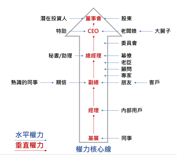 其實這個用在利害關係人管理上也是非常好用的,搞清楚這家公司的權力結構、人際關係與政治派系,別只懂得埋頭苦幹,而不懂得花時間去經營自己的組織關係。