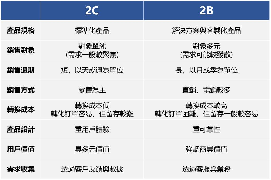 若要說我那時真的比較弱的,應該就是 2C / 零售經驗上比較不足,所以當年我進公司,最關鍵的就是要累積 2C + 網路公司的運作經驗。這也是我當時會選擇從與業務合作的 RD 部門切入的原因之一。因為透過業務,你會更快的了解 2C 的銷售與 2B 最大的差異在哪。