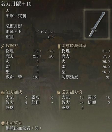 在遊戲中,當我把智力點滿後,我先拿了一把攻擊力最強的法杖,同時配帶一把智力加成的刀,這兩個配在一起,不管遠戰近戰,我的攻擊力都非常猛。我也開始用這種高智力的配點玩起近戰,除非碰到一些非常討人厭的王,不然一般不放魔法。