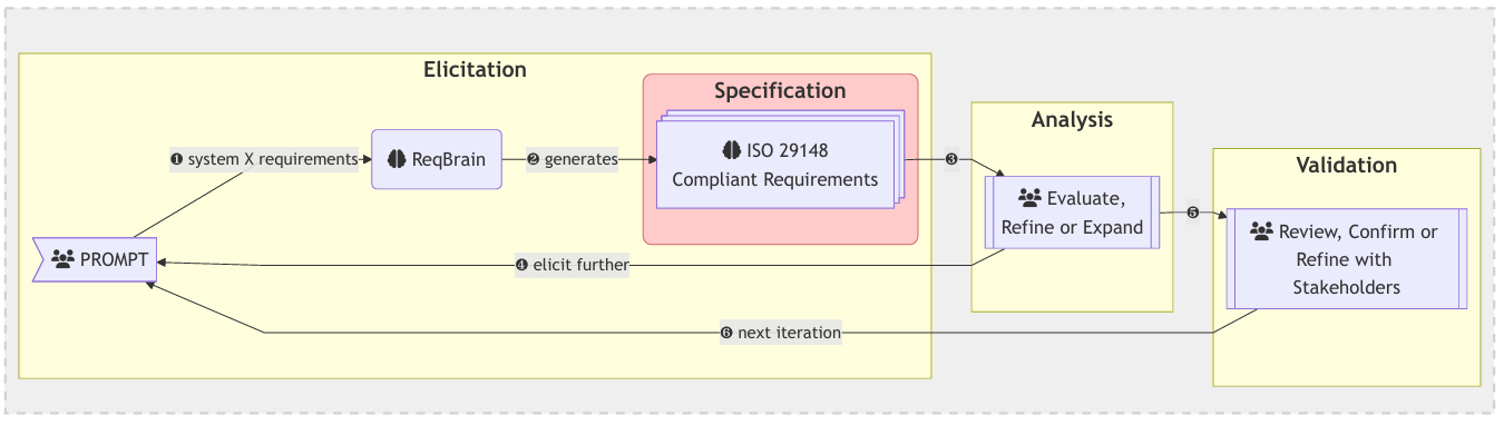 在這研究中,它採用了 AI 負責撰寫符合 ISO 29148 標準的文件,並由人類進行分析與驗證的方式來進行。