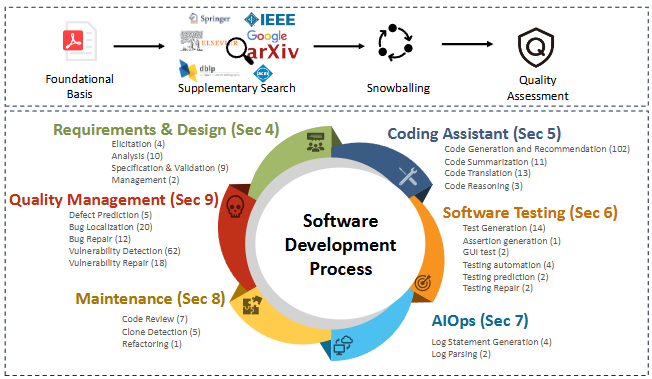 簡單說,基準是為了幫助我們判斷這個 LLM 在特定任務上的解題能力或成熟度。而過去大家熟知的研究大多針對程式碼生成或測試,但這份研究報告則覆蓋了需求、程式碼生成、測試、維護與品質管理等面向。